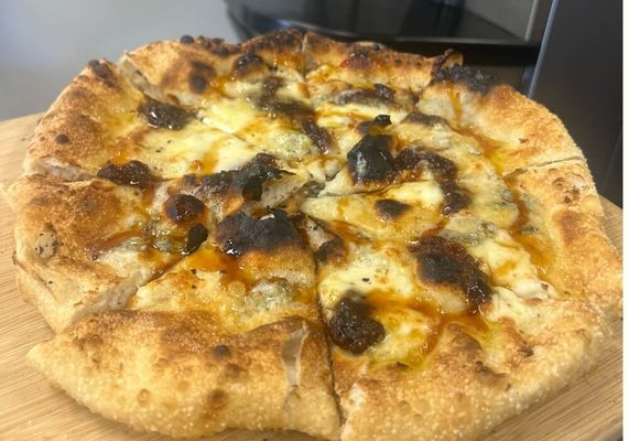 Creamy Blue Gorgonzola Cheese, Preserved Fig, Fior di latte Mozzarella and a drizzle of hot honey - pure deliciousness!